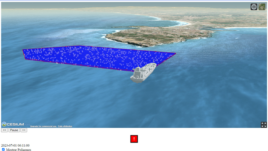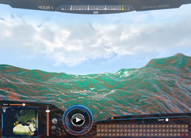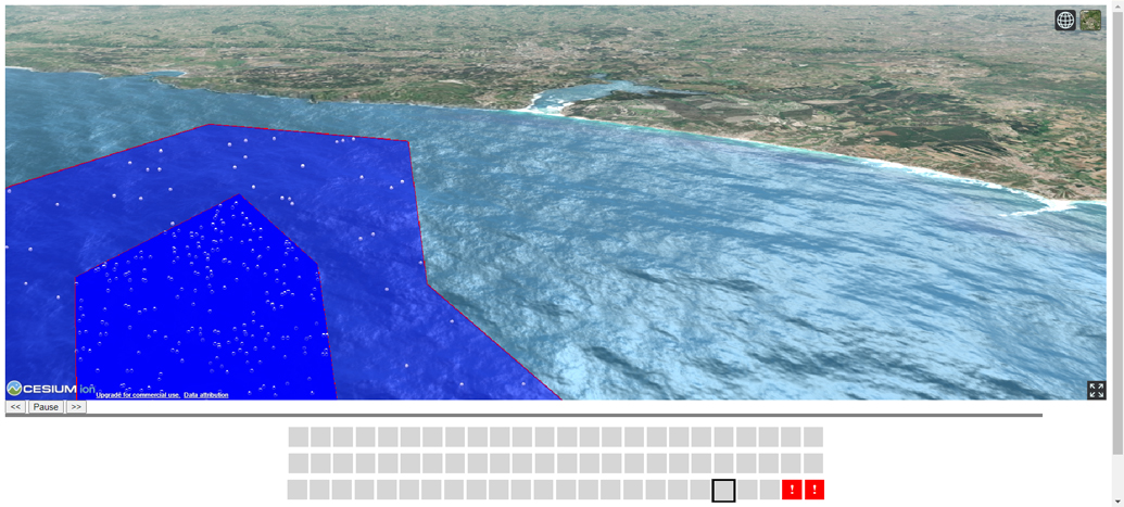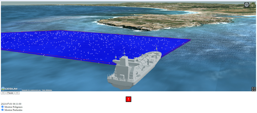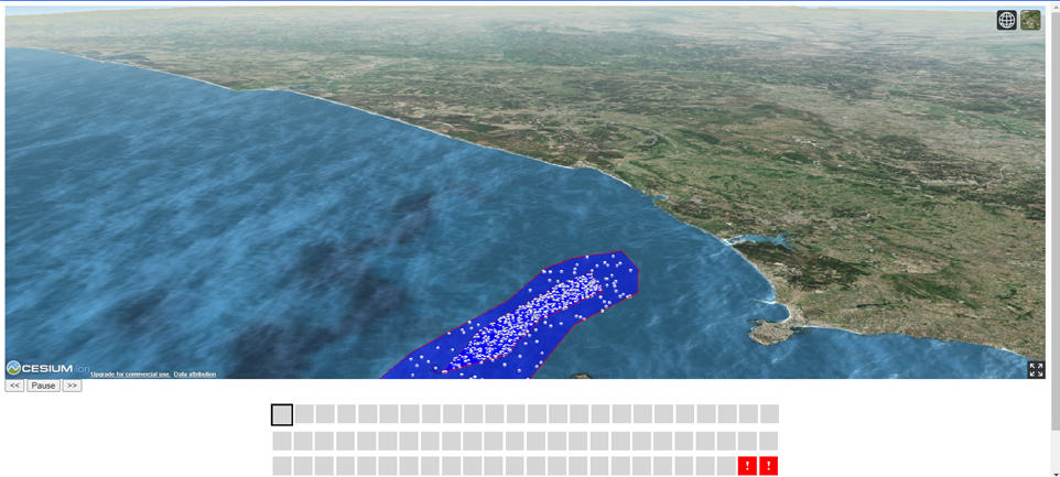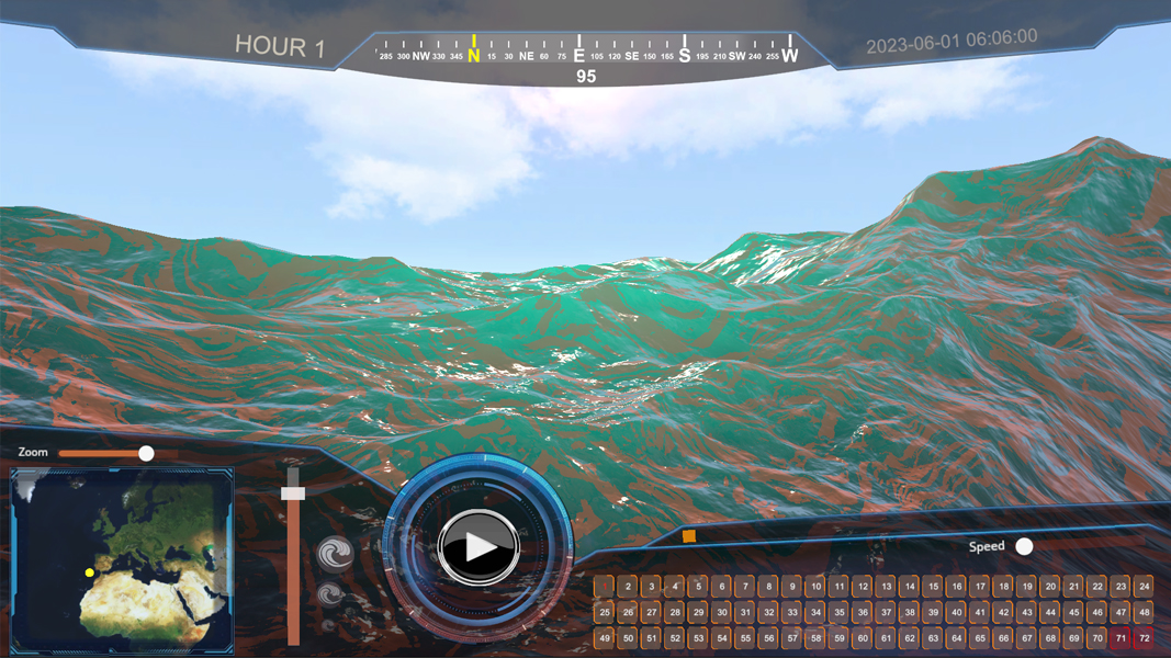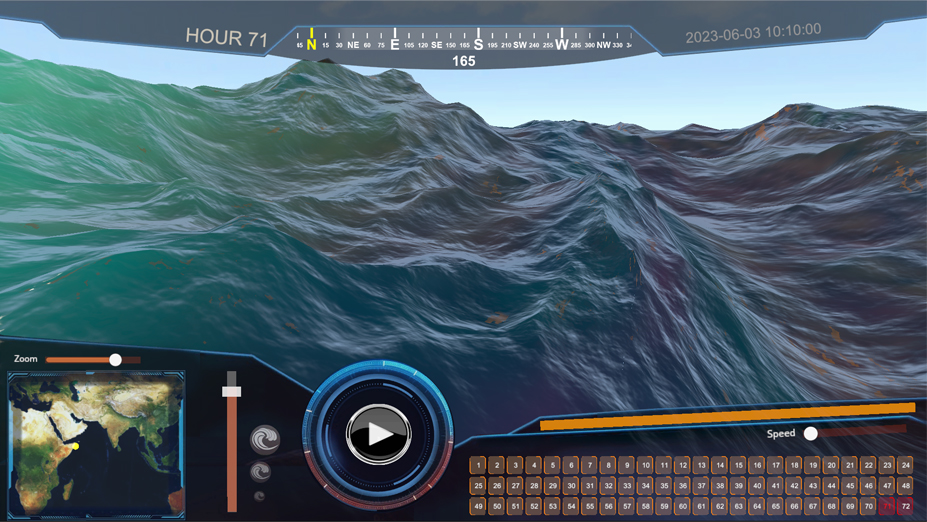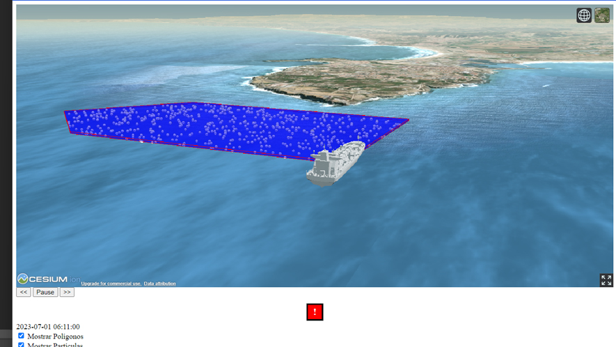 This demonstrator allows immersive visualisation of oil spills that are generated through a data processing workflow. When faced with an oil spill scenario, data is generated that allows what happened to be monitored and thus interactively visualised.